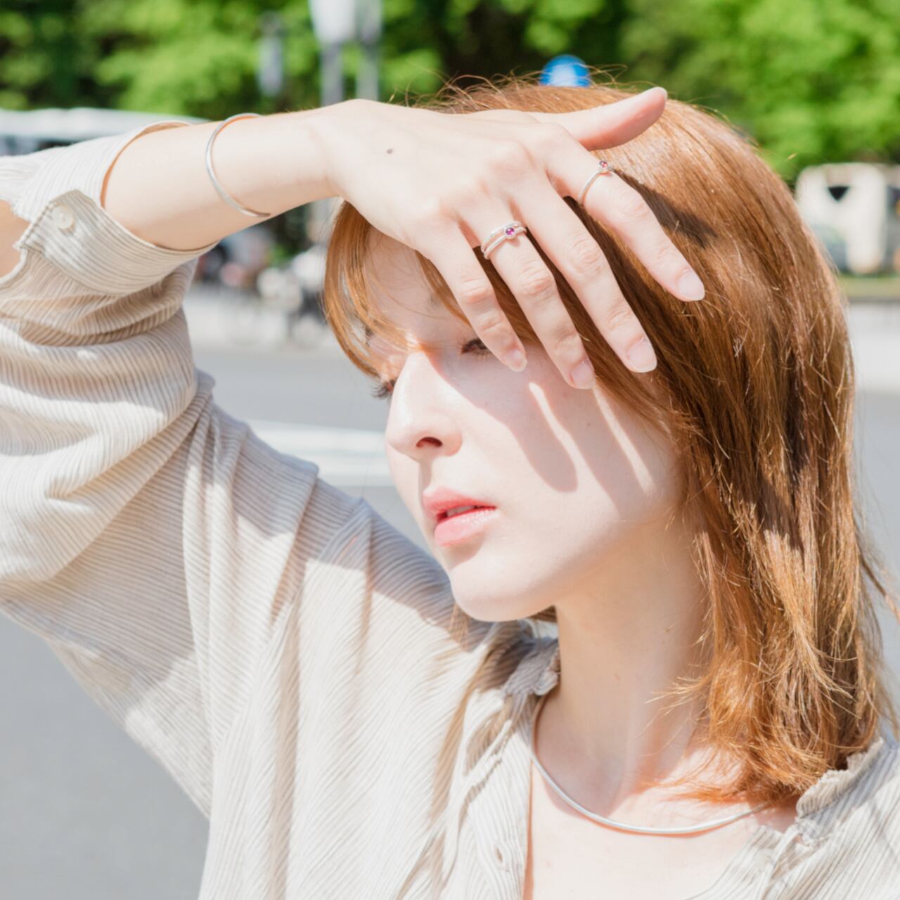 蕾をイメージした天然石を添えた物。