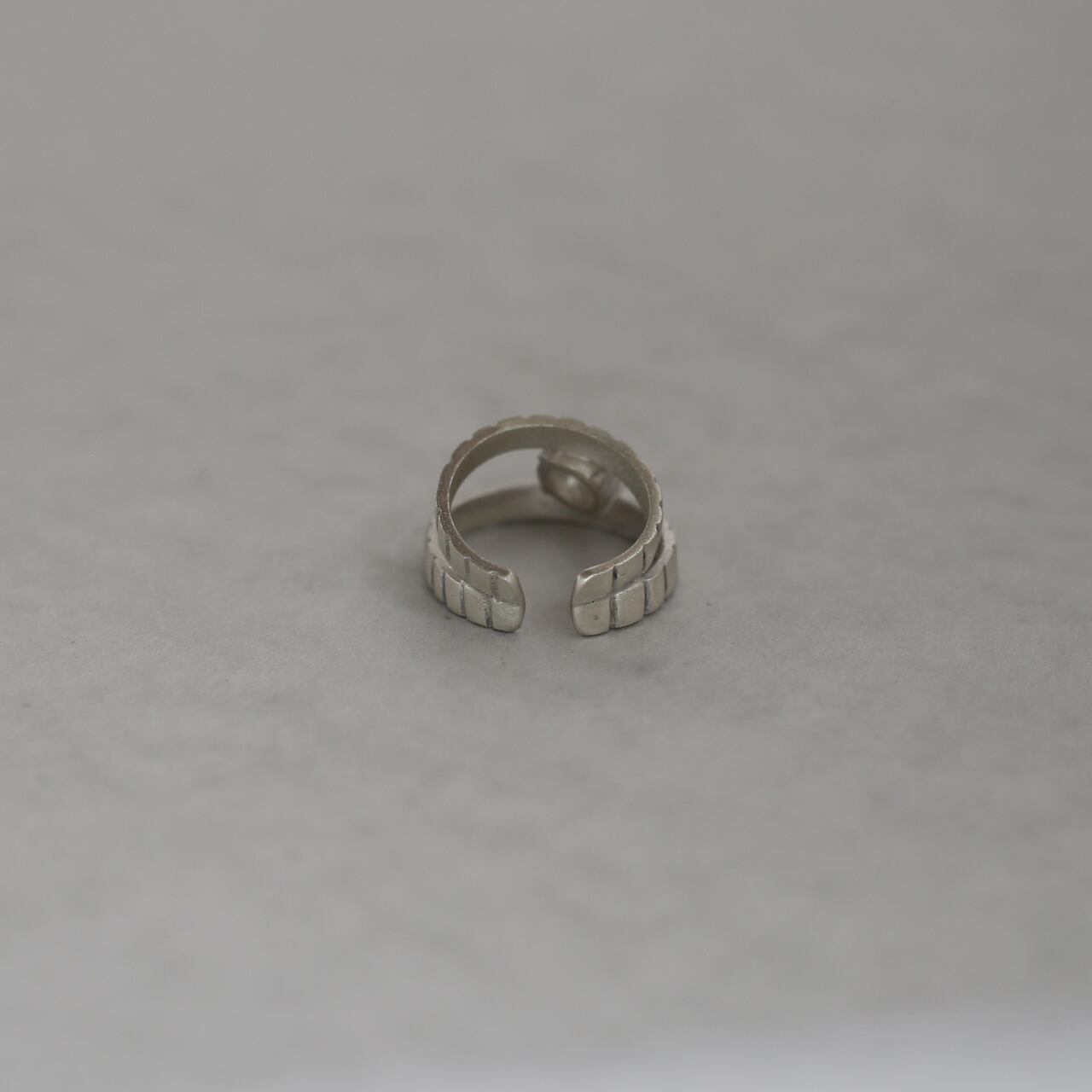 シルバーの地金にひとつひとつ丁寧に模様をつけました。